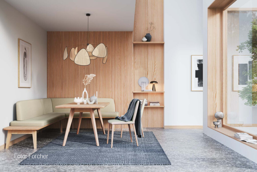 Der warme Charakter und die natürliche Struktur des Holzes verstärken dieses noch.